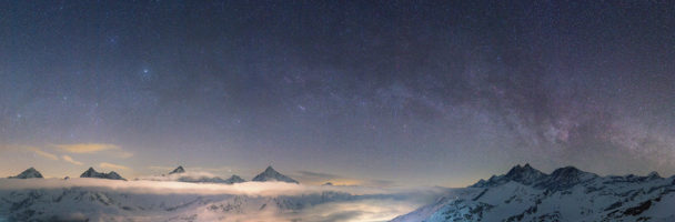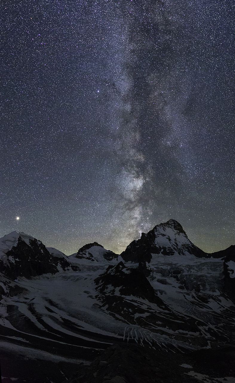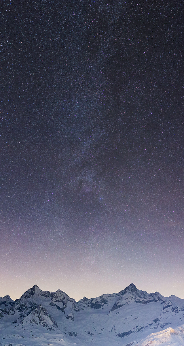 Eiger-Mönch-Jungfrau étoilés Mönch étoilé Alphubel, Täschhorn et Dom étoilés Lenspitze et Nadelhorn étoilés     Alphubel étoilé Mont Rose, Lyskamm et Castor étoilés vertorama Ober Gabelhorn et Zinalrothorn étoilés Breithhorn étoilé & Zermatt Dent d'Hérens étoilée  Zinalrothorn VL Voie Lactée sur le Wetterhorn, le Schreckhorn, le Finsteraarhor   Cervin au Stellisee Grand Combin étoilé Ober Gabelhorn étoilé